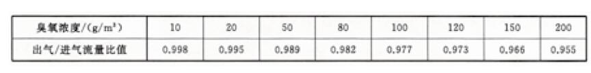 不同臭氧濃度時出氣/ 進氣體積流量比值見表C.7。