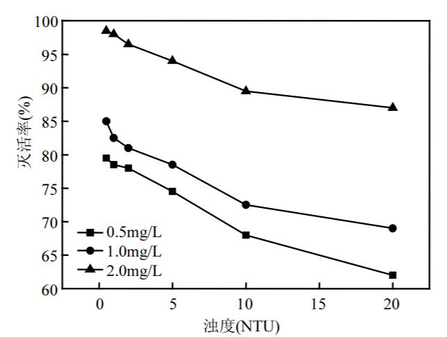 3.當臭氧為 2.0mg/L 以上作用時間,在飲用水消毒的濁度、溫度、pH 值、初始藻細胞密度濃度范圍內,銅綠微囊藻的滅活率在 98.0%以上.